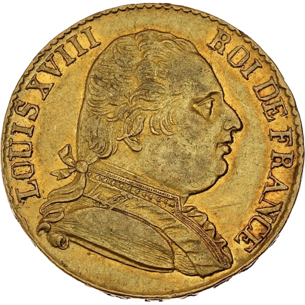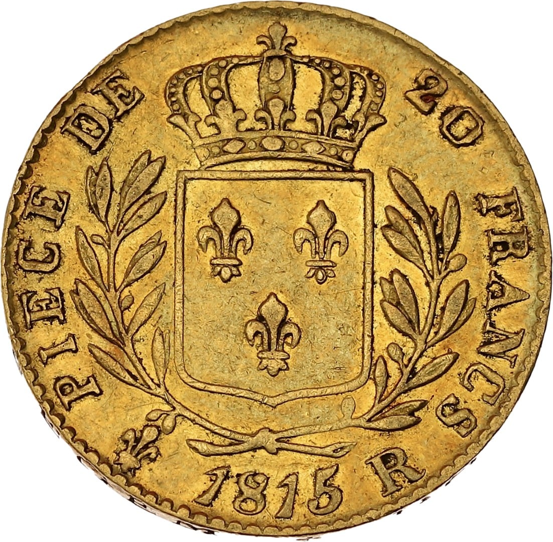 Louis XVIII (1814-1824). 20 francs buste habillé 1815, R, Londres.