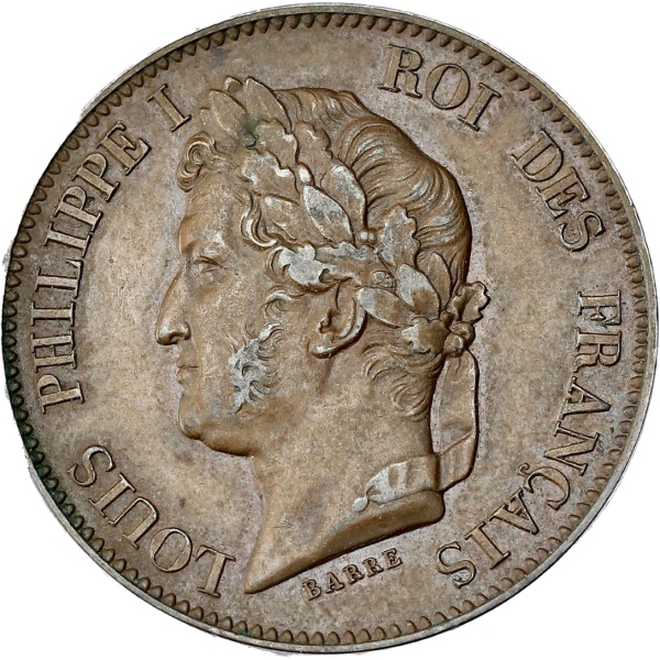 Louis-Philippe Ier (1830-1848). Essai au module de 5 centimes, refonte des monnaies de cuivre ND.