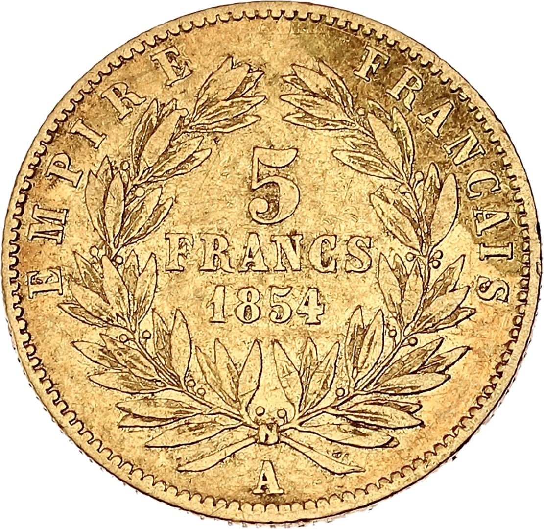 Second Empire / Napoléon III (1852-1870). 5 francs tête nue petit module, tranche cannelée 1854, A, Paris.