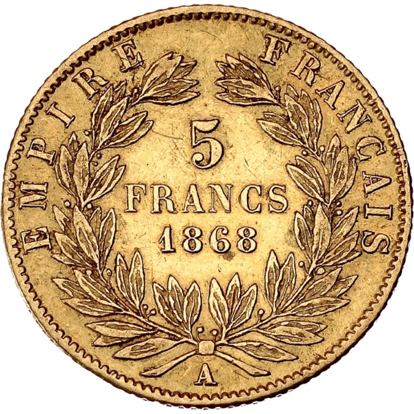 Second Empire / Napoléon III (1852-1870). 5 francs tête laurée 1868, A, Paris.