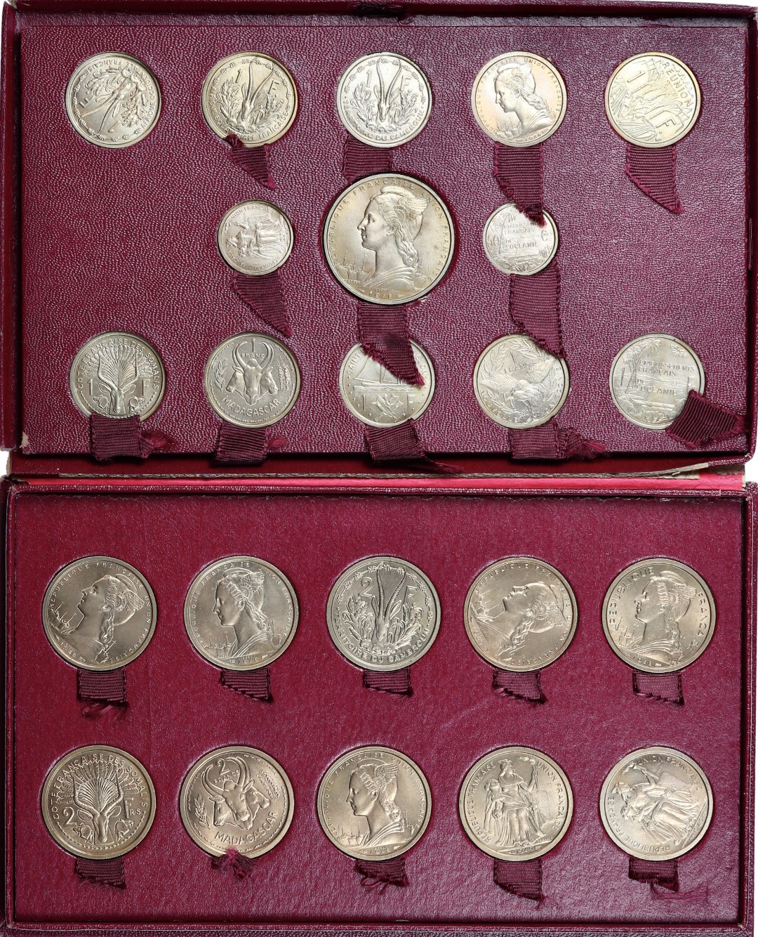 IVe République (1947-1958). Coffret de 23 essais des colonies françaises 1948-1949, Paris.