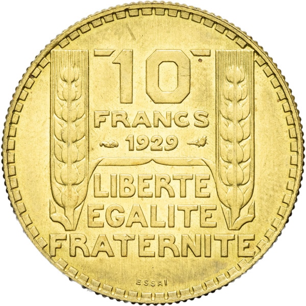 - IIIe République (1870-1940). Essai de 10 francs Turin en cupro-aluminium 1929, Paris.