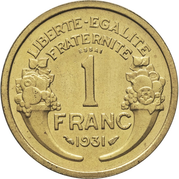 - IIIe République (1870-1940). Essai-piéfort de 1 franc Morlon 1931, Paris.