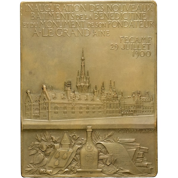 - IIIe République (1870-1940). Plaque, inauguration des bâtiments de la Bénédictine de Fécamp, Alexandre Le Grand fondateur, par F. de Vernon 1900, Paris.