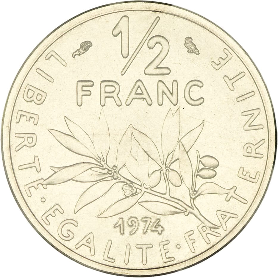 - Ve République (1958 à nos jours). Piéfort de 1/2 franc Semeuse 1974, Pessac.