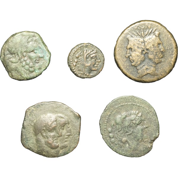 Anonymes, quadrans après 211 av. J.-C. - Q. Fabius Maximus, quadrans 127 av. J.-C. - C. Marius Censorinus, as 88 av. J.-C. - Sextus Pompée, as c.45 av. J.-C. - Semis, imitation ibérique (?)