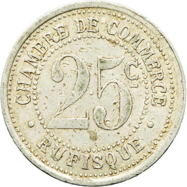 - SENEGAL IIIe République (1870-1940). 25 centimes, Chambre de Commerce de Rufisque 1920.