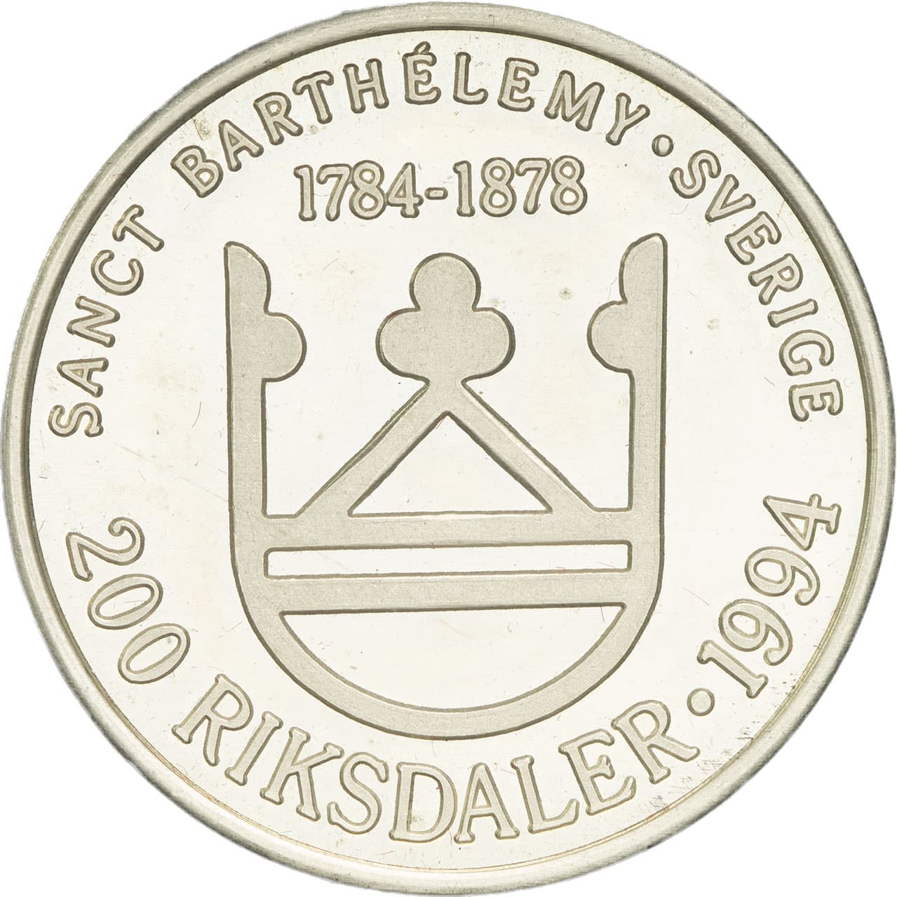 - FRENCH ANTILLES Saint-Barthélemy (Ile de). 200 francs / 200 riksdaler 1994.