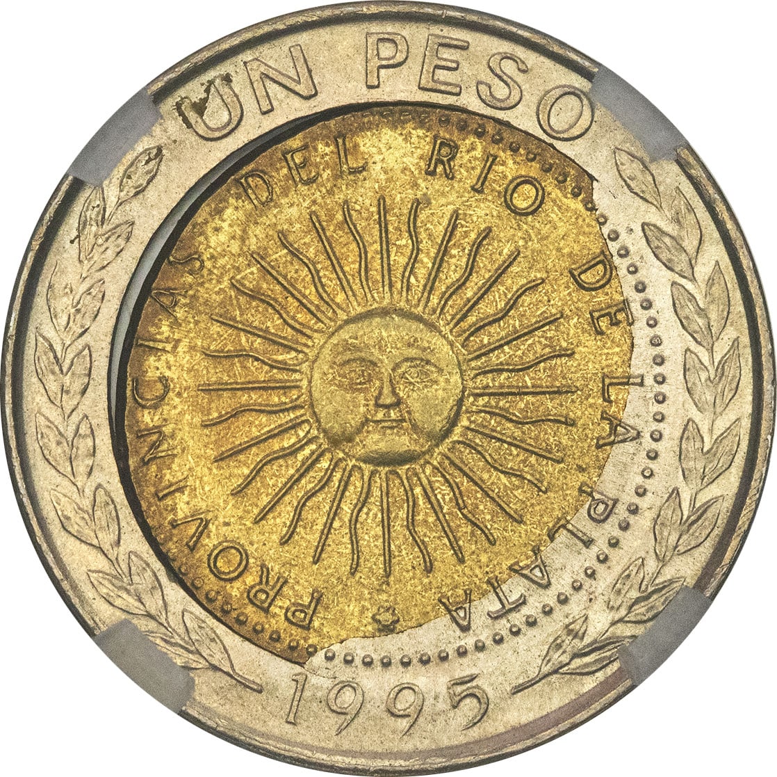 - ARGENTINA République. 1 peso, fauté, cœur déformé 1995.