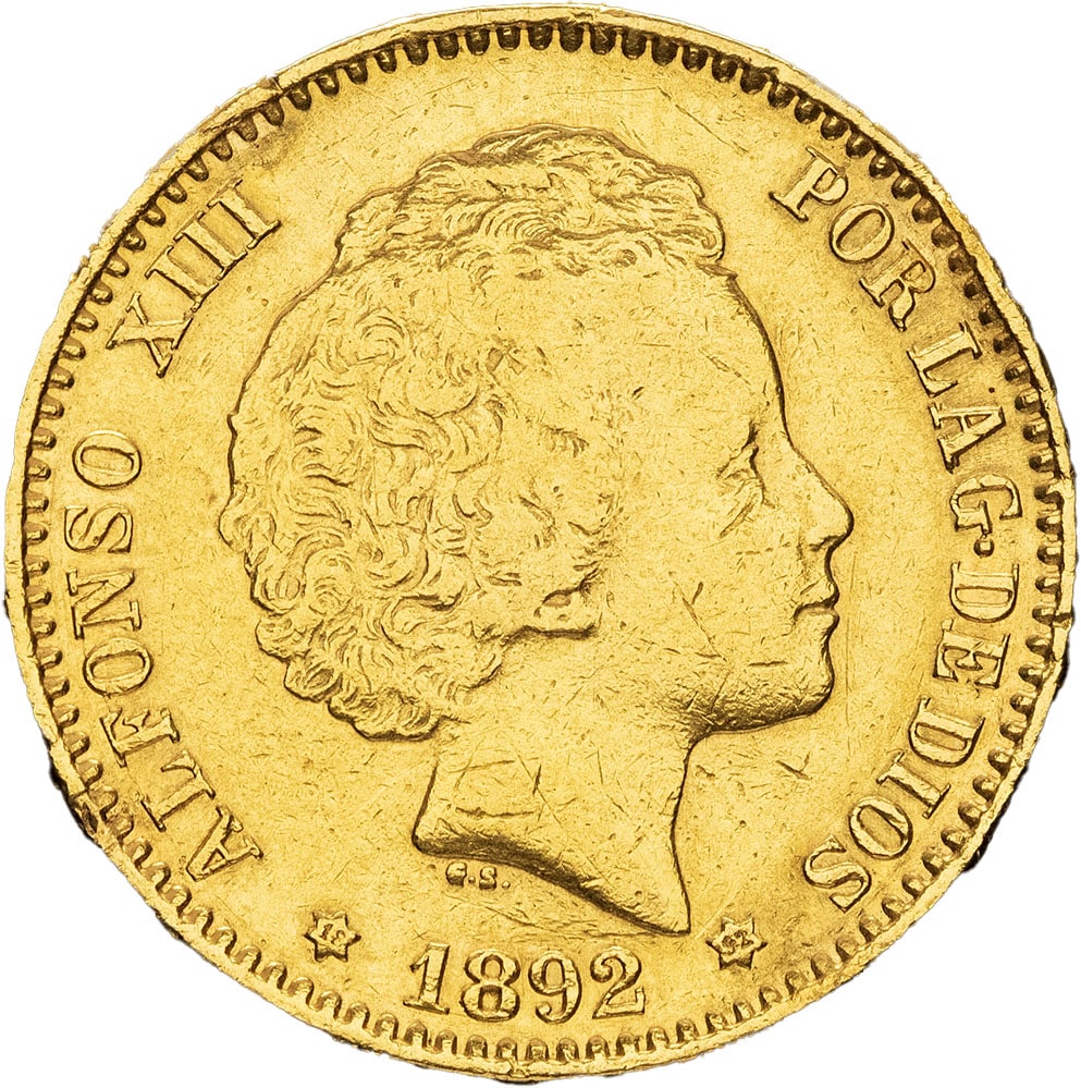 - SPAIN Alphonse XIII (1886-1931). 20 pesetas, buste adolescent 1892 PG, M, Madrid.