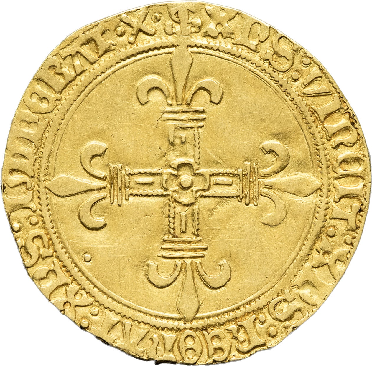 Rv. (lis couronné) XPS: VINCIT: XPS: REGNAT: XPS: IMPERAT. (différent). Croix fleurdelisée avec quadrilobe en cœur.