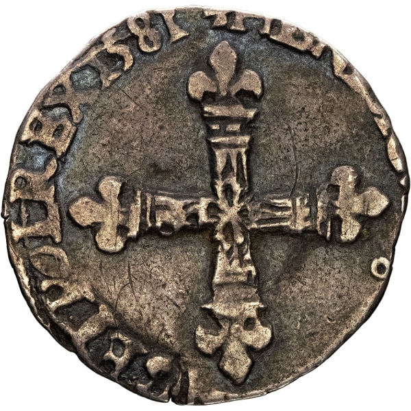 - FRANCE / ROYAL Henri III (1574-1589). Huitième d’écu, croix de face 1581, 9, Rennes.
