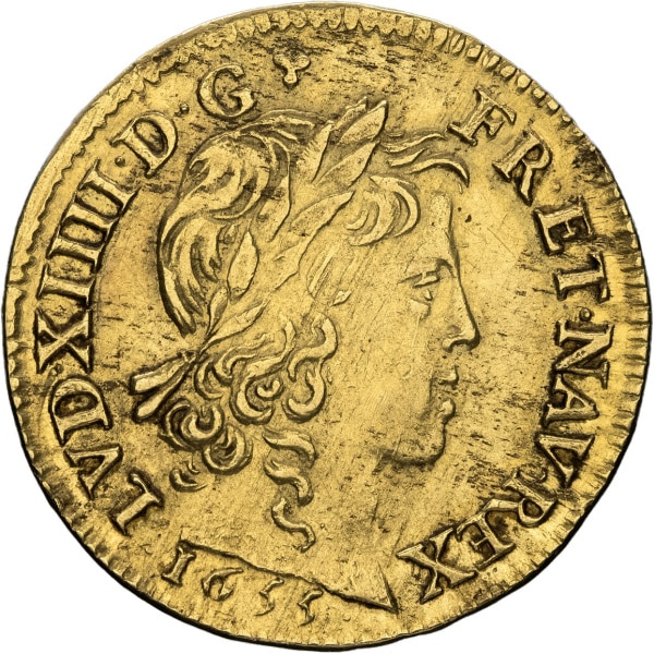 - FRANCE / ROYAL Louis XIV (1643-1715). Louis d’or à la mèche longue 1655, Y, Bourges.