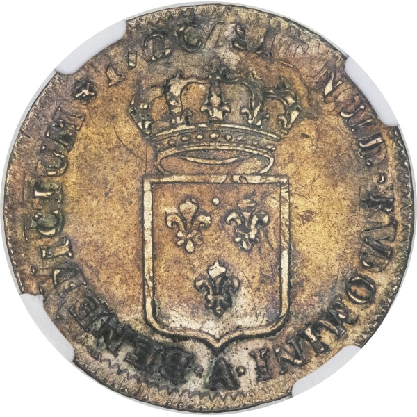 Av. LUD. XV. D. G. FR. ET NAV. REX (différent). Buste du Roi à droite, lauré, drapé et cuirassé ; au-dessous (réformation).