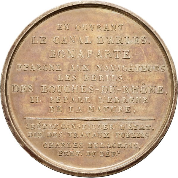 - Consulat (1799-1804). Lot de 2 médailles : ouverture du canal d’Arles, par Poize An 10 (1802), Paris.