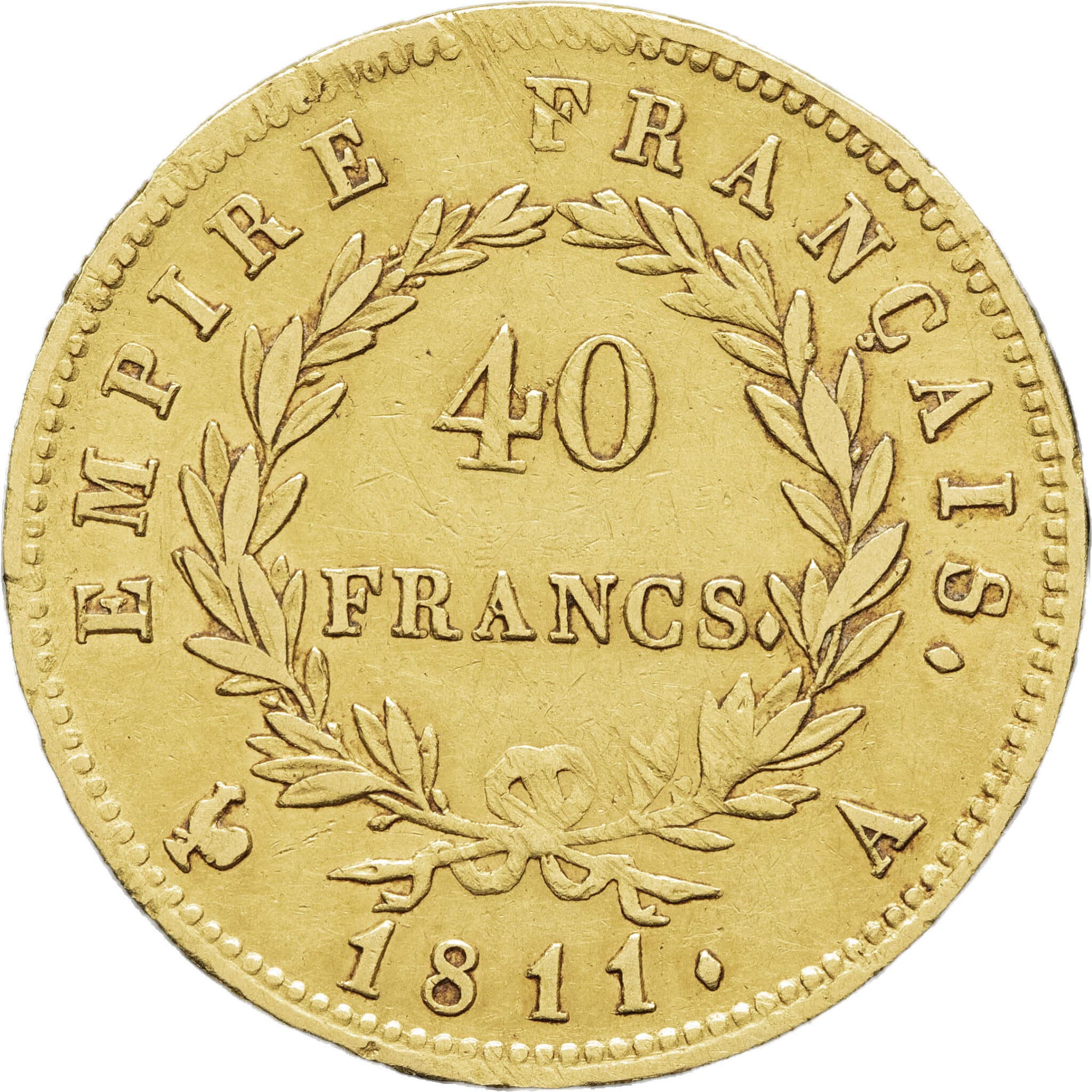 - Premier Empire / Napoléon Ier (1804-1814). 40 francs Empire, tranche fautée 1811, A, Paris.