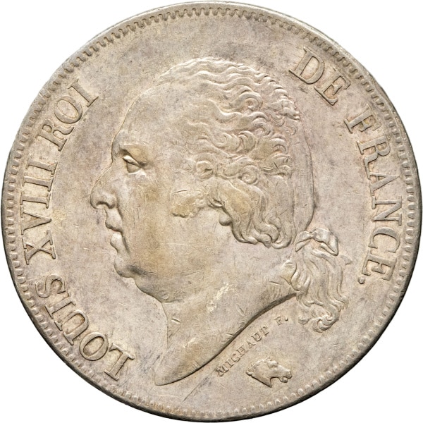 Av. LOUIS XVIII ROI DE FRANCE. Tête nue à gauche, au-dessous signature MICHAUT F. et tête de cheval.
