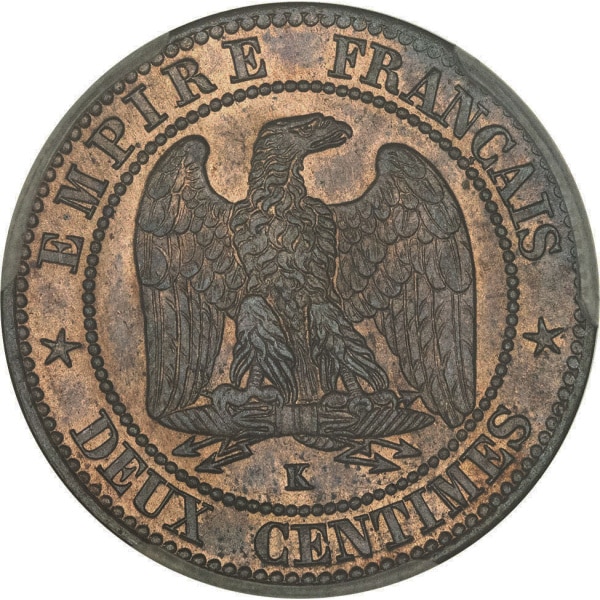 - Second Empire / Napoléon III (1852-1870). Deux centimes tête laurée 1862, K, Bordeaux.