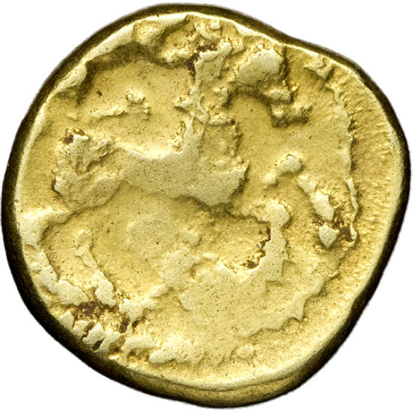 Normandie. Quart de statère, type au loup conducteur ND (fin du IIIe siècle av. J.-C.).