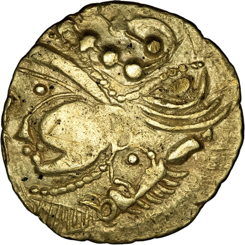 - CELTIC Aulerques Éburovices. Hémistatère aux sangliers ND (50-60 av. J.-C.).