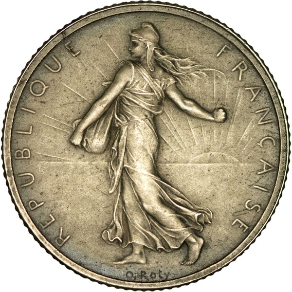 Av. REPUBLIQUE FRANÇAISE. La Semeuse à gauche, avec le soleil levant, marchant et semant à contre-vent ; signature O. ROTY.