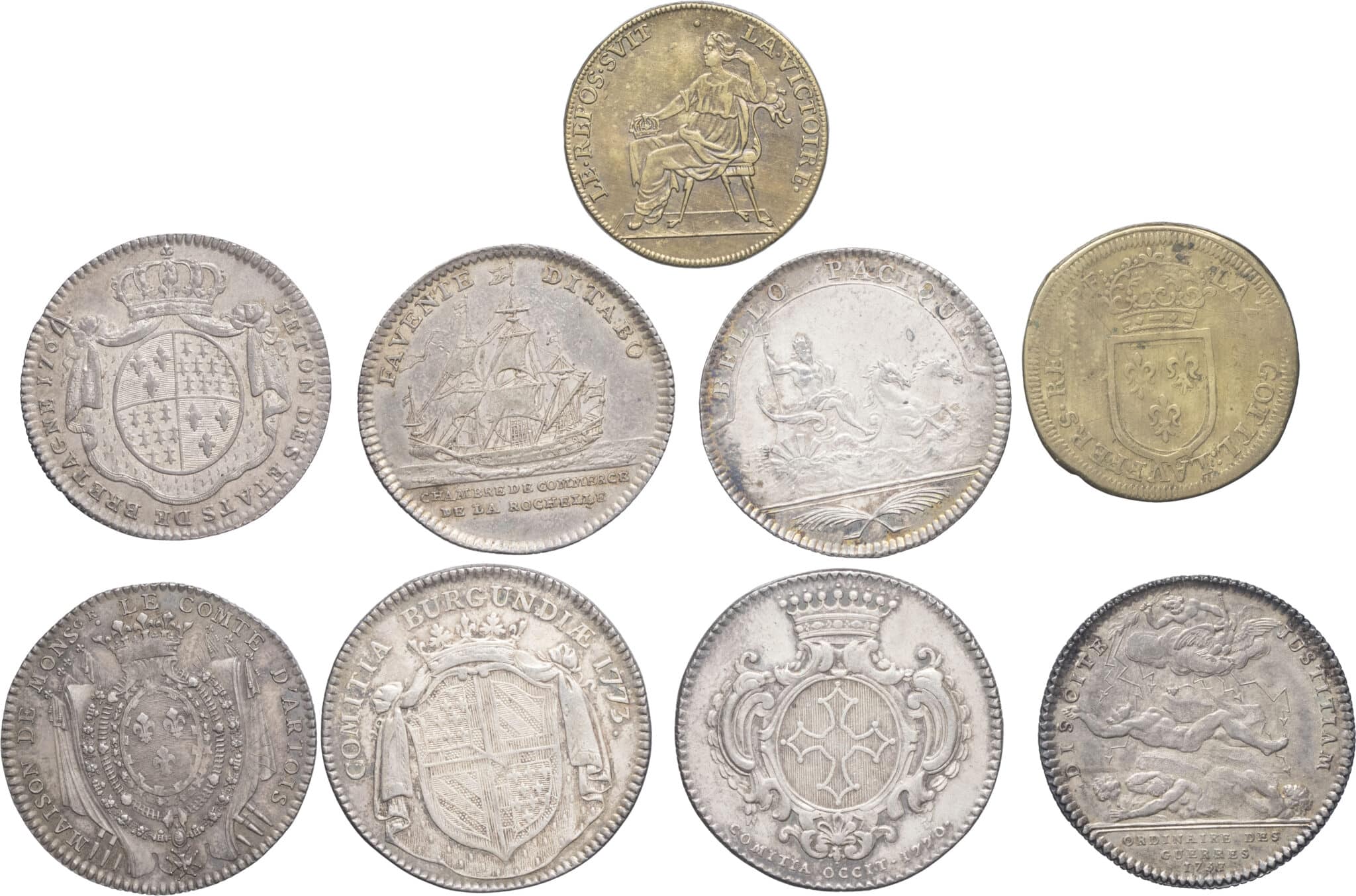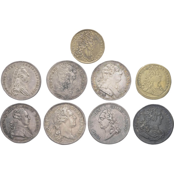 - FRANCE / ROYAL Lot. Lot de 9 jetons Ancien Régime ND.