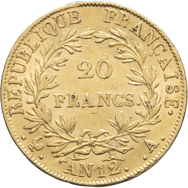 - Premier Empire / Napoléon Ier (1804-1814). 20 francs Empereur, type intermédiaire An 12 (1804), A, Paris.