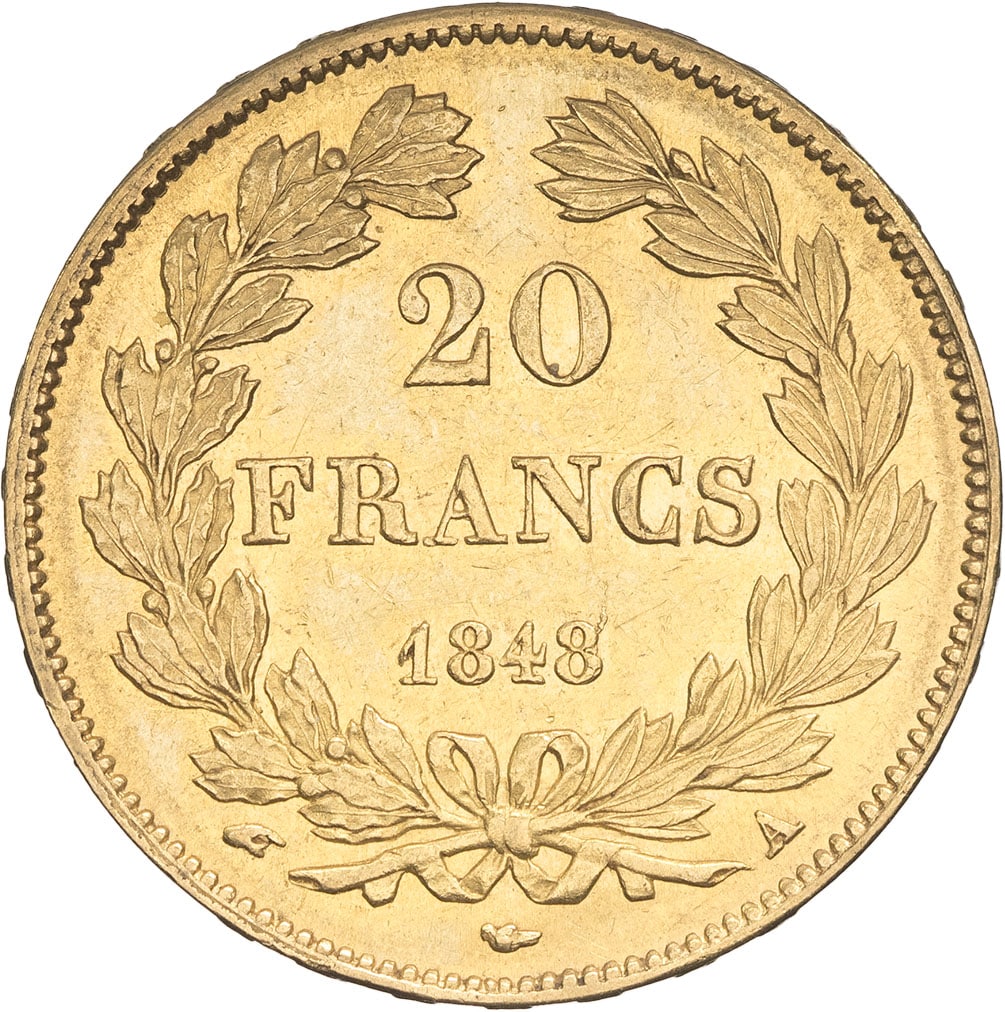 - Louis-Philippe Ier (1830-1848). 20 francs tête laurée 1848, A, Paris.