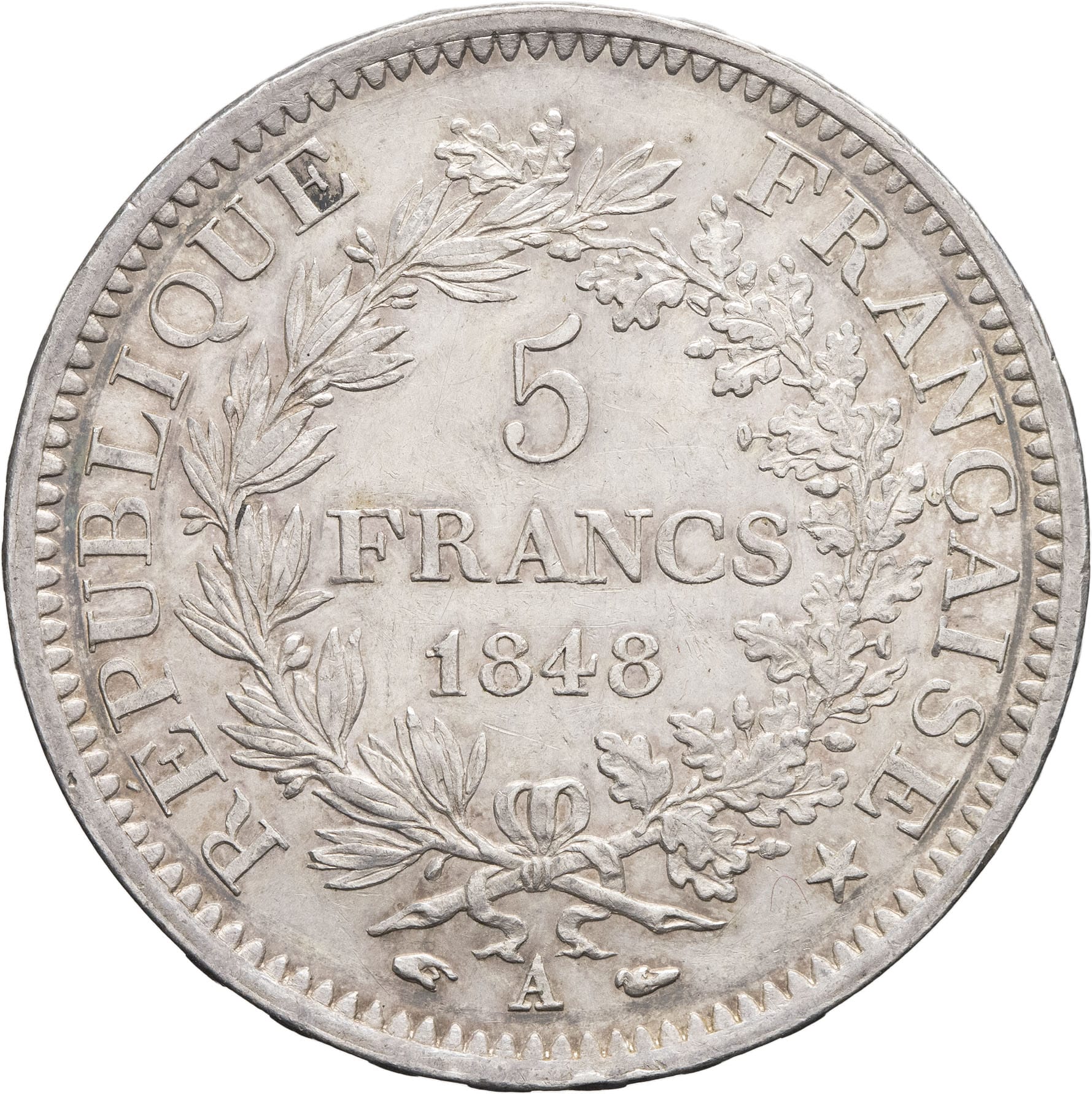 - IIe République (1848-1852). 5 francs Hercule 1848, A, Paris.