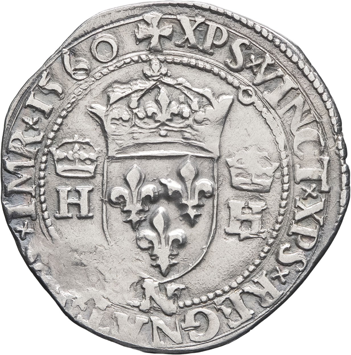 Henri II (1547-1559). Demi-teston à la tête nue, 1er type 1560, N, Montpellier.