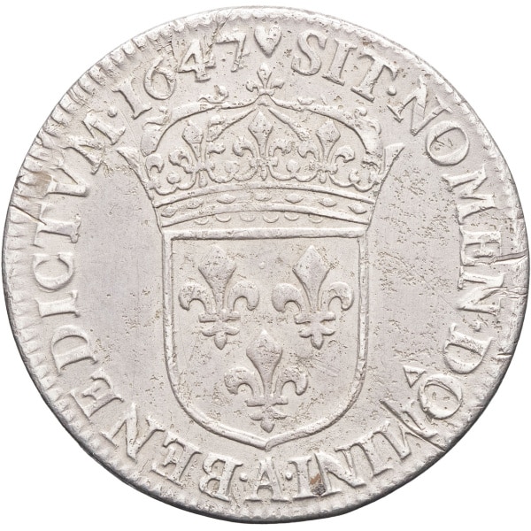 - FRANCE / ROYAL Louis XIV (1643-1715). Quart d’écu à la mèche longue 1647, A, Paris.