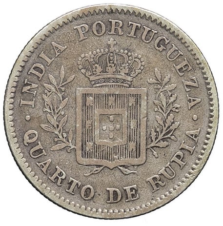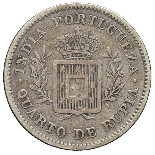 - PORTUGUESE INDIES Louis Ier (1861-1889). Quart de roupie 1881, Calcutta.