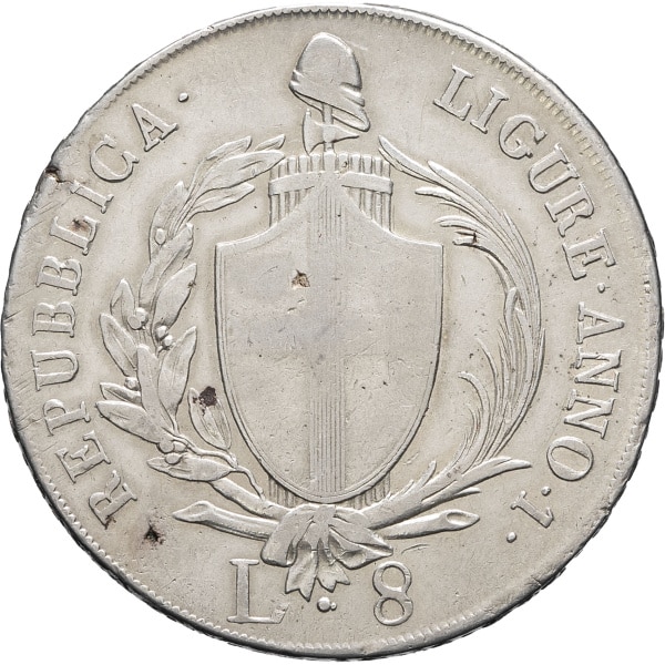 - ITALY Gênes, République ligurienne (1797-1805). 8 lire 1798 - Anno 1, Gênes.