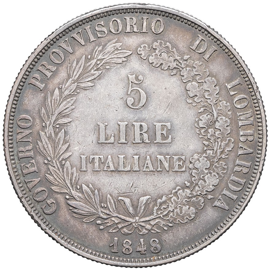 - ITALY Lombardie, Gouvernement provisoire de (1848). 5 lire 1848, M, Milan.