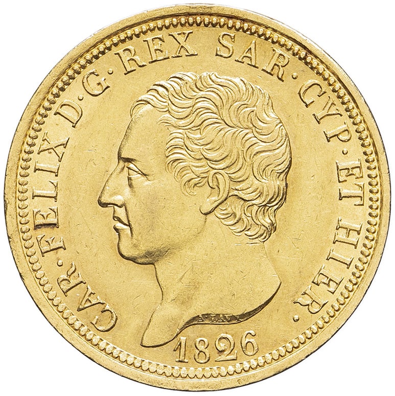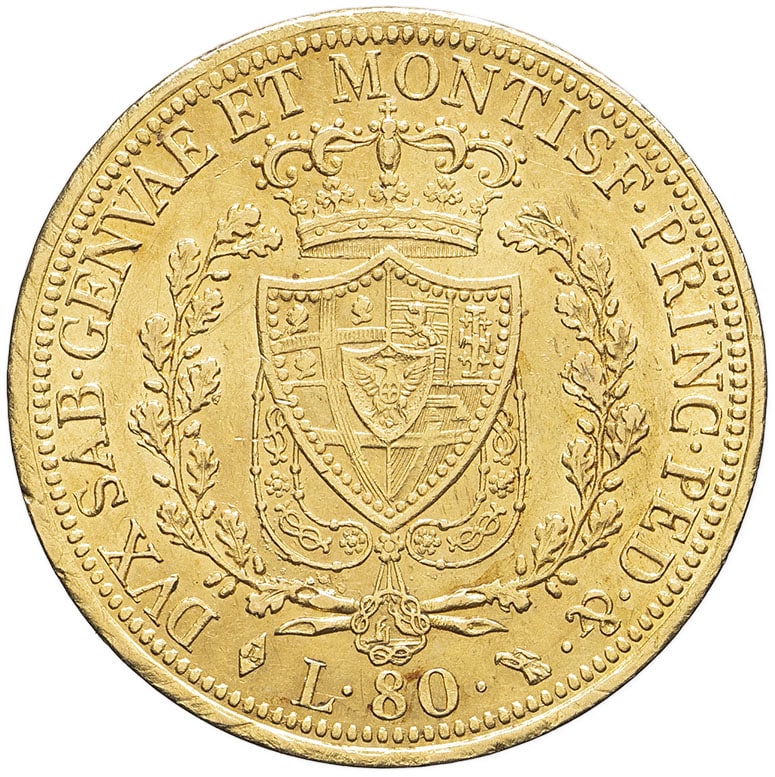 - ITALY Savoie-Sardaigne, Charles-Félix (1821-1831). 80 lire 1826, Tête d’aigle, Turin.