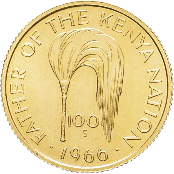 - République (1963-). 100 shillings, 75e anniversaire de Jomo Kenyatta père de la nation 1966, Londres.