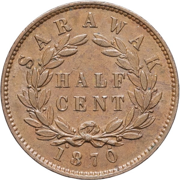 - MALAYSIA Sarawak, Charles Anthony Johnson Brooke (1868-1917). Half cent 1870, Birmingham.