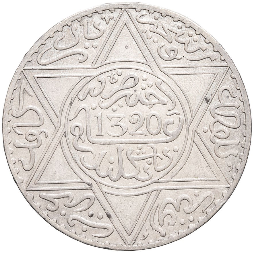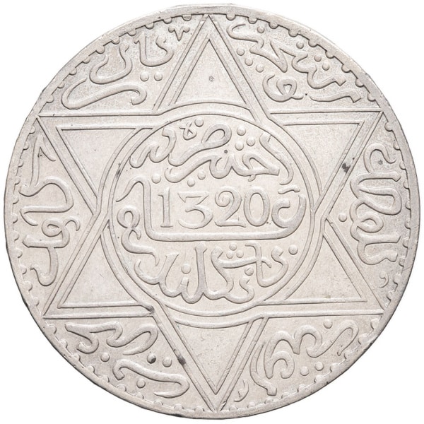 - MOROCCO Abdül Aziz I (1894-1908). 10 dirhams (rial) AH 1320 (1902), Londres.