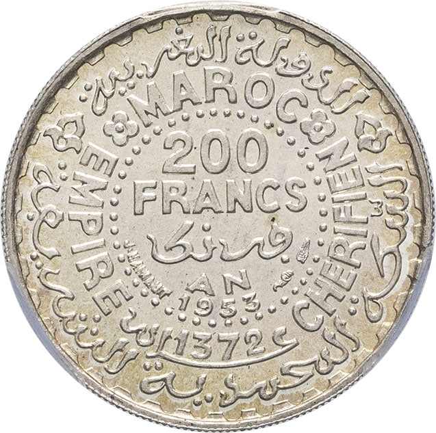 - MOROCCO Mohammed V (1927-1961). 200 francs 1953 - AH 1372, Paris.