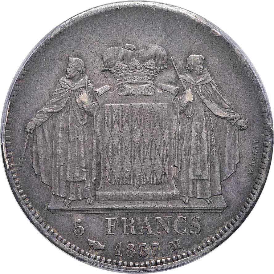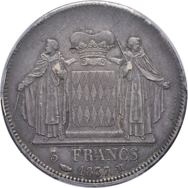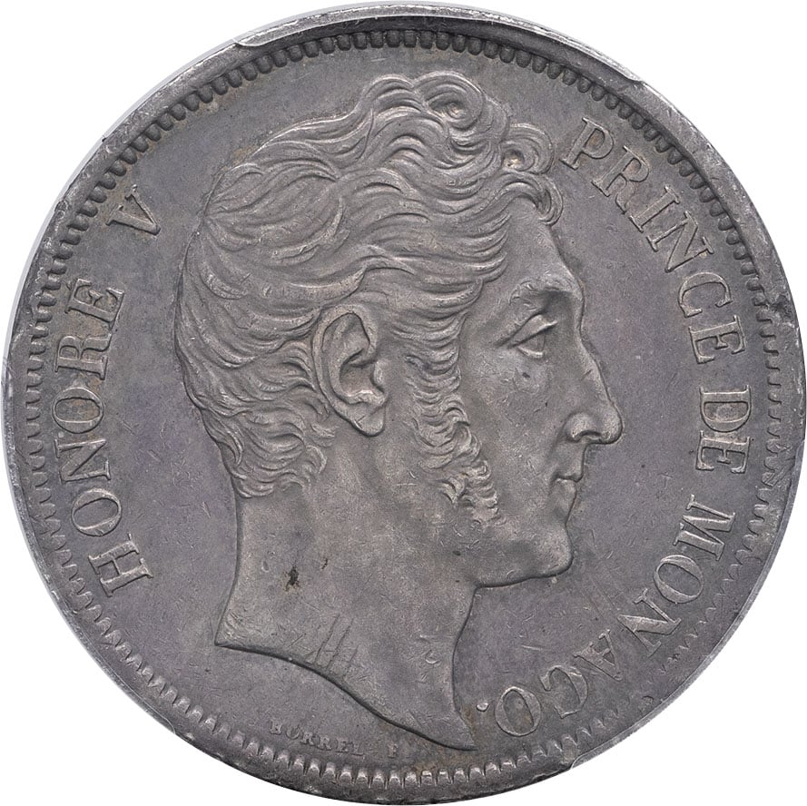 - Honoré V (1819-1841). 5 francs 1837, M, Monaco.
