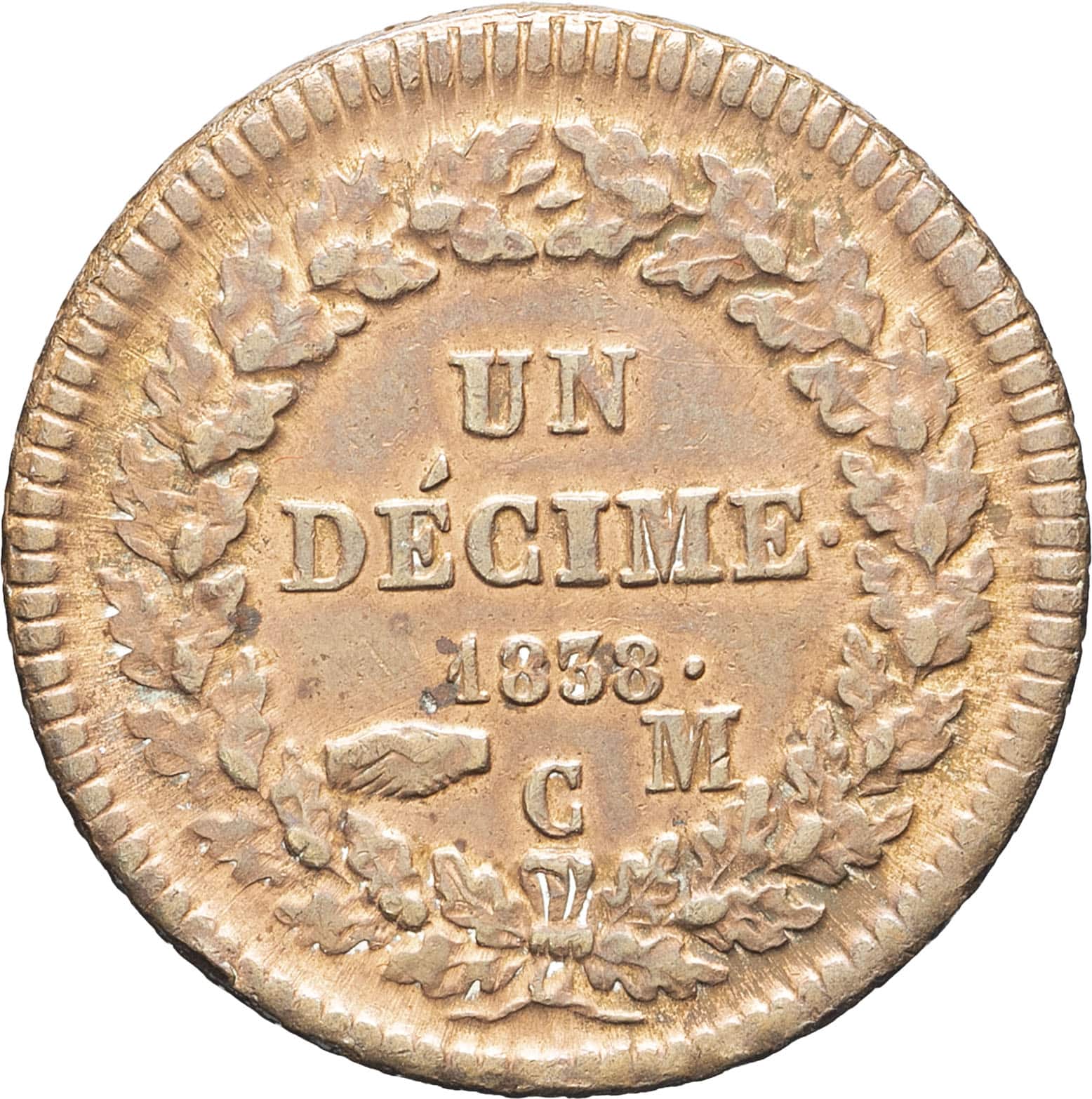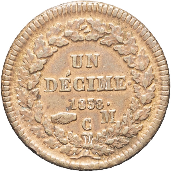 - Honoré V (1819-1841). Un décime, grosse tête 1838, Monaco.