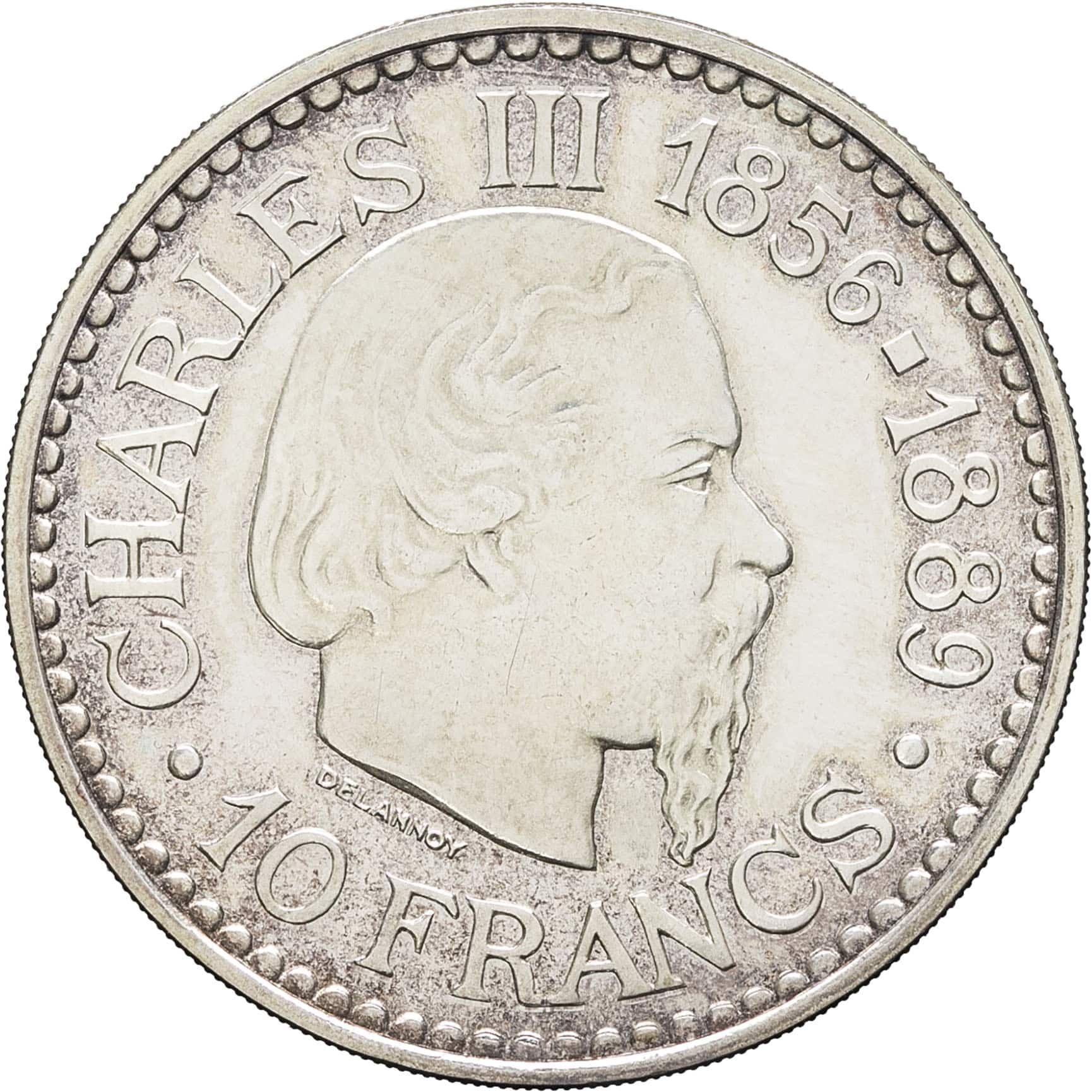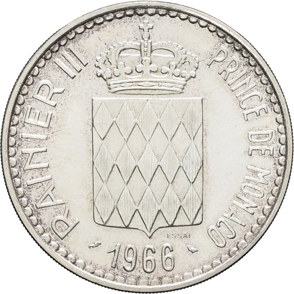 - Rainier III (1949-2005). Essai de 10 francs, Charles III, centenaire de Monte-Carlo 1966, Paris.