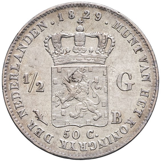 - NETHERLANDS Guillaume I (1815-1840). 1/2 gulden ou 50 cents 1829, B, Bruxelles.