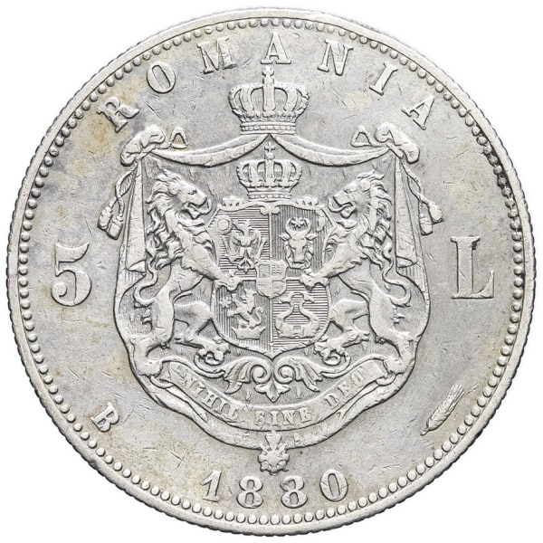 - ROMANIA Charles Ier, Prince (1866-1881). 5 lei type DOMINUL 1880, B, Bucarest.