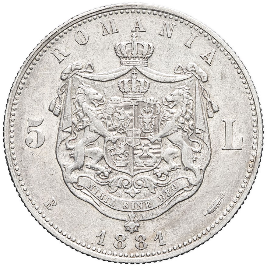 - ROMANIA Charles Ier, Prince (1866-1881). 5 lei type DOMINUL 1881, B, Bucarest.