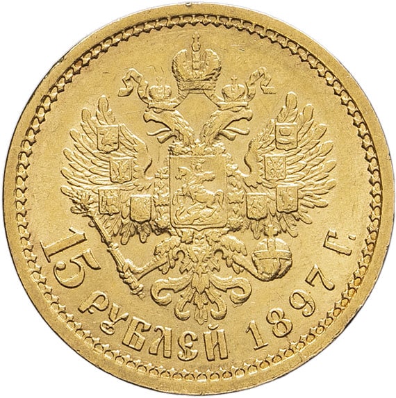 - RUSSIA Nicolas II (1894-1917). 15 roubles 1897 (АГ), Saint-Pétersbourg.