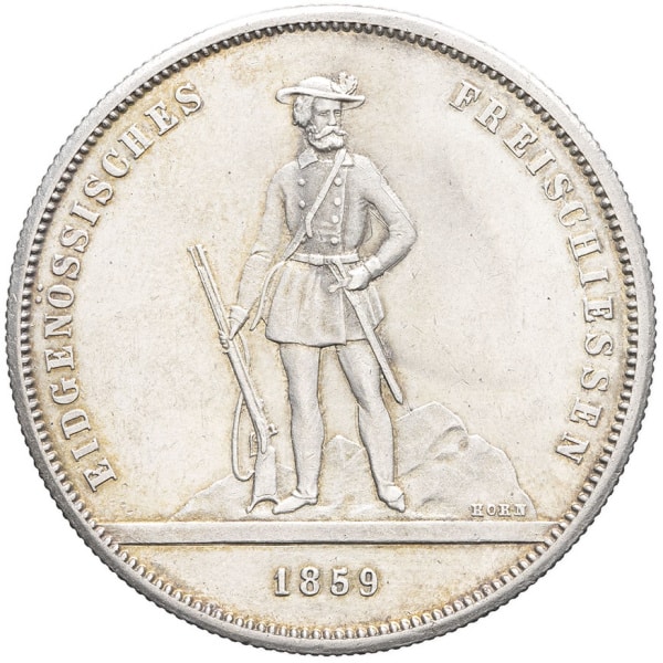 - SWITZERLAND Confédération Helvétique (1848 à nos jours). Module de 5 francs commémoratif, Concours fédéral de tir à Zürich 1859, Berne.