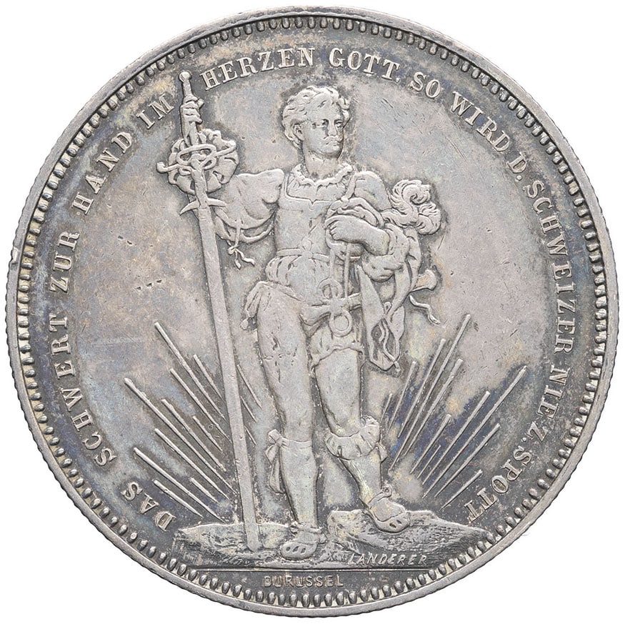 - SWITZERLAND Confédération Helvétique (1848 à nos jours). Module de 5 francs commémoratif, Concours fédéral de tir à Bâle 1879, Berne.