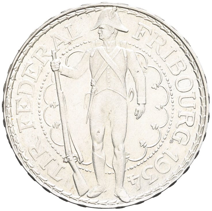 Confédération Helvétique (1848 à nos jours). Module de 5 francs commémoratif, Concours fédéral de tir à Fribourg 1934, B, Berne.