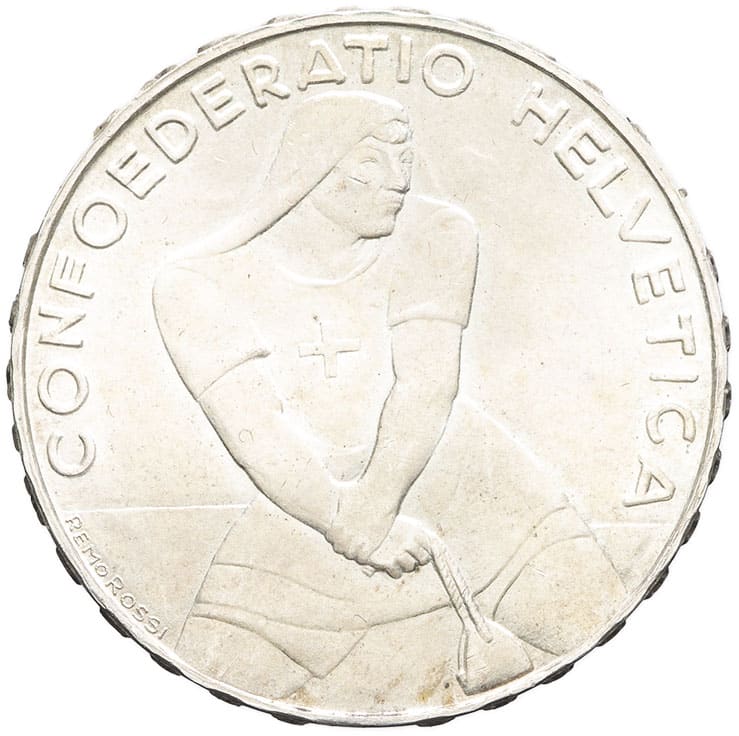- SWITZERLAND Confédération Helvétique (1848 à nos jours). 5 francs, 600e anniversaire de la bataille de Laupen 1939, B, Berne.